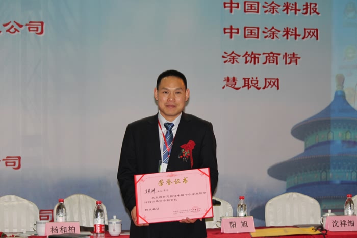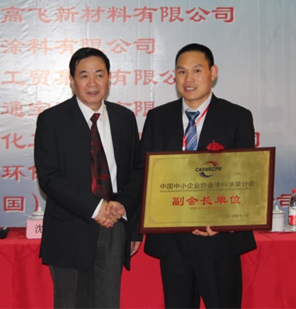 2014年11月23日上午,中國中小企業(yè)協(xié)會涂料涂裝分會在上海諾寶國際酒店勝利召開。屆時,中國中小企業(yè)協(xié)會會長李子彬、涂料涂裝分會會長沈浩博士為澳漢盛川化工(北京)有限公司董事長王同洲先生頒發(fā)副會長單位榮譽證書。